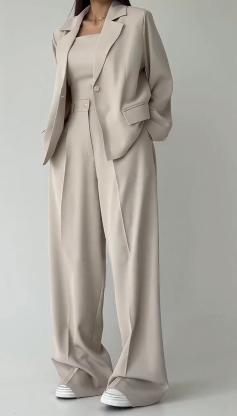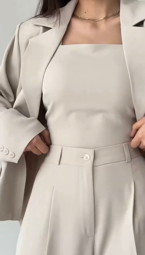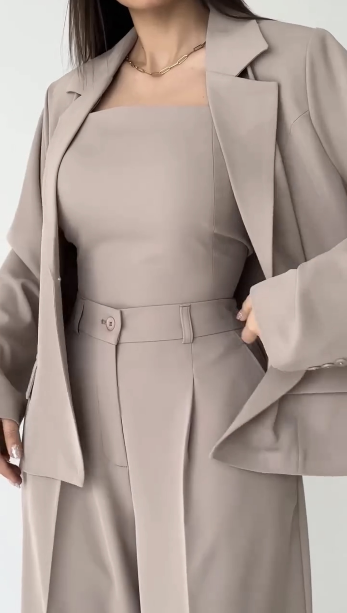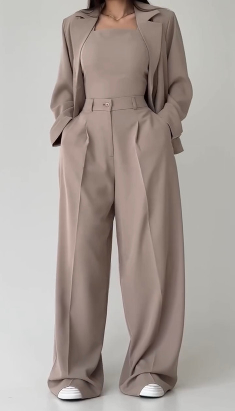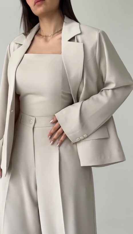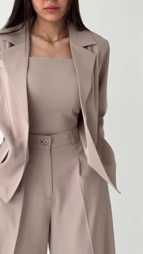 ست سه تیکه کت شلوار و کراپ مزونی دخترانه
